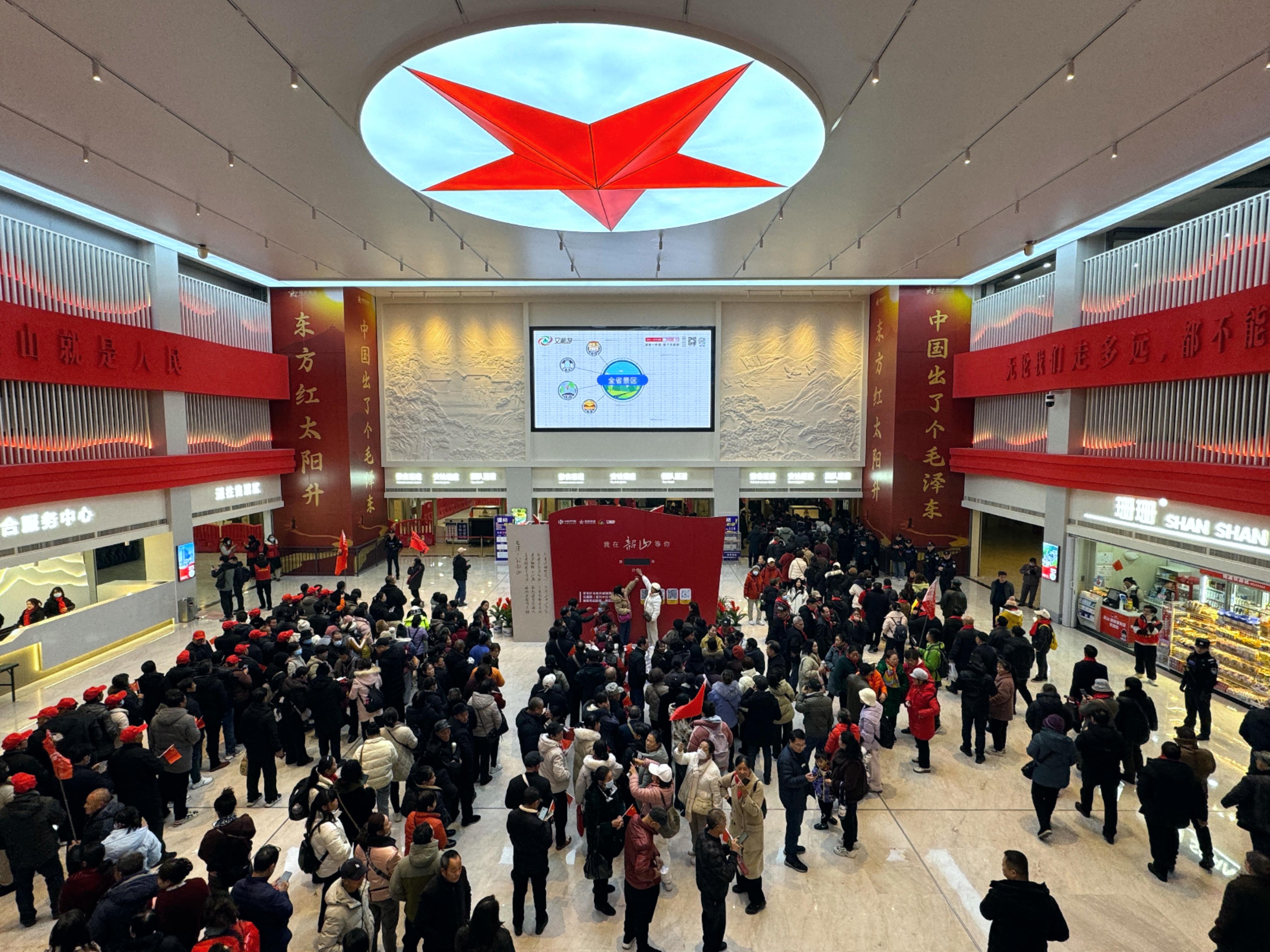 韶山游客換乘中心作為韶山景區(qū)的第一窗口,形象與服務(wù)直接關(guān)聯(lián)游客體驗。本次改造,著重對換乘大廳區(qū)域進行了品質(zhì)升級,融入紅色文化元素,優(yōu)化視覺體驗,將景區(qū)預(yù)約預(yù)訂系統(tǒng)全面接入“又湘游”湖南省官方文旅綜合服務(wù)平臺,實現(xiàn)與全省文旅資源的深度整合與高效共享,有力促進區(qū)域協(xié)同發(fā)展。同時,借助平臺智能導(dǎo)覽功能,實時精確傳遞信息,推送景區(qū)資訊,規(guī)劃科學(xué)線路,全方位提升服務(wù)效能,為游客創(chuàng)造更優(yōu)質(zhì)的游覽環(huán)境,賦能韶山文旅產(chǎn)業(yè)高質(zhì)量發(fā)展。