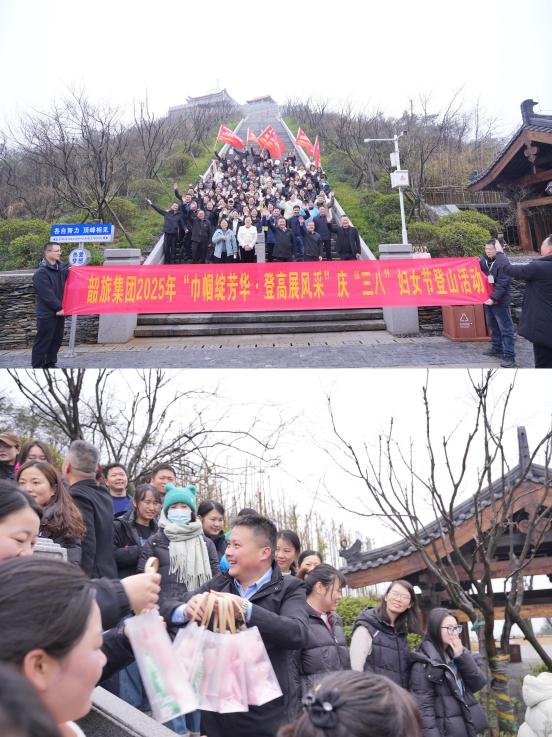 經(jīng)過半小時的不懈攀登,大家陸續(xù)成功登頂,于山頂合 影留念,隨后,韶旅集團(tuán)領(lǐng)導(dǎo)班子為女員工們送上精心準(zhǔn)備的婦女節(jié)專屬禮品并送上節(jié)日祝福。