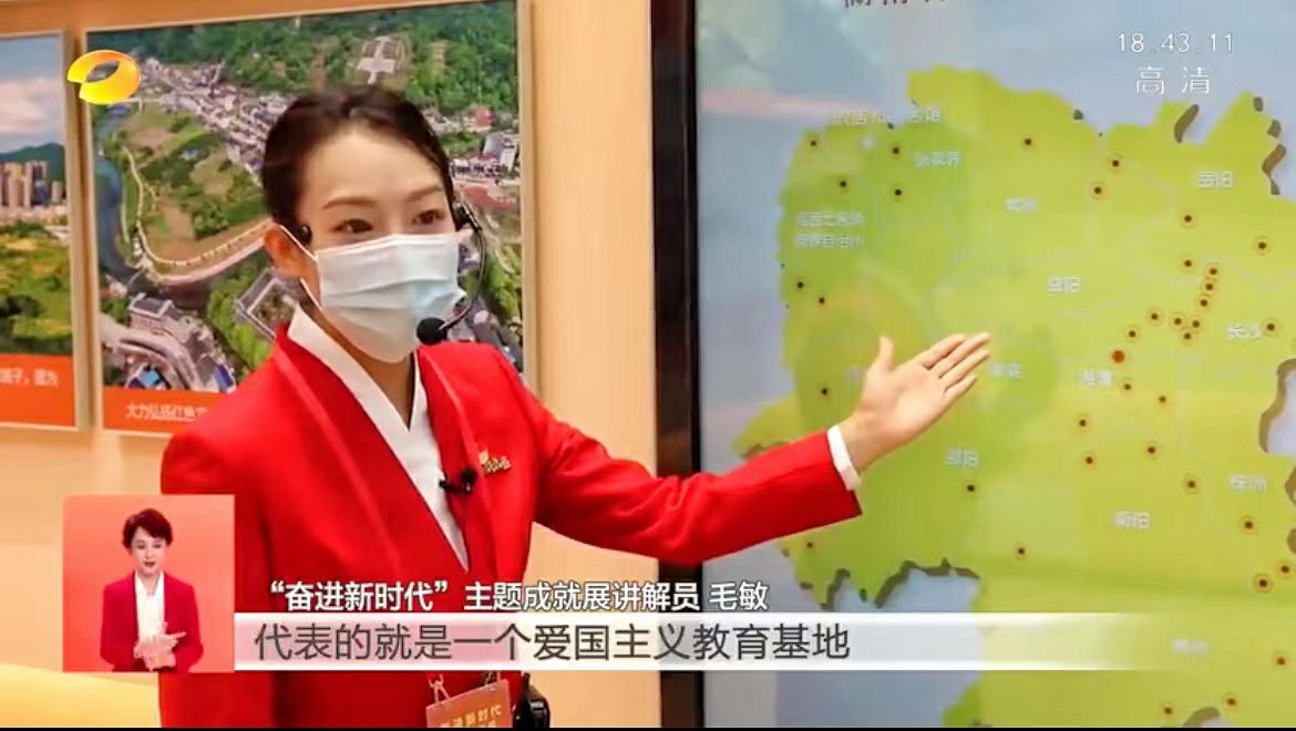 2022年8月初,經(jīng)湖南省委宣傳部層層選拔,毛敏和其他入選講解員一起被推薦到“奮進新時代”主題成就展擔(dān)任講解員,她們提前一個月就來到北京和全國33個省市區(qū)的99名講解員一起進行軍事化封閉集訓(xùn),包括專業(yè)講解培訓(xùn)、發(fā)聲訓(xùn)練、形體訓(xùn)練等。整個湖南展廳還在布展階段,毛敏和同事們一起戴著安全帽,在現(xiàn)場背詞、改詞,不斷調(diào)整站位、語速等……經(jīng)過一系列的培訓(xùn)、磨煉,毛敏的整體素質(zhì)得到很大提升。